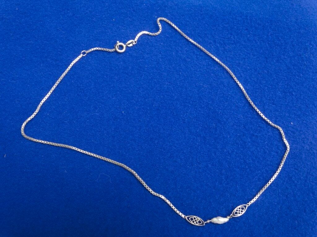 Aus dem Pfandhaus: Antike Venezianische Silberkette mit Barock Perle - 835 er Altsilber - Länge ca. 40 cm - Gewicht 3,2 Gramm - ohne Limit / Mindestpreis