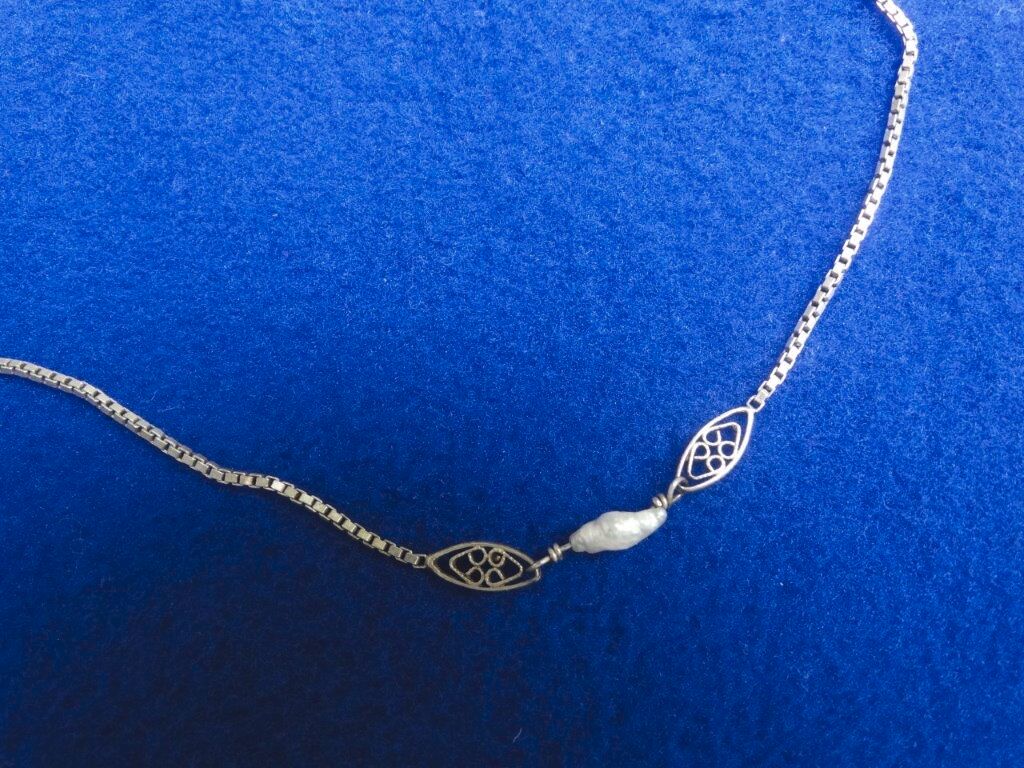 Antike Venezianische Silberkette mit Barock Perle - Altsilber