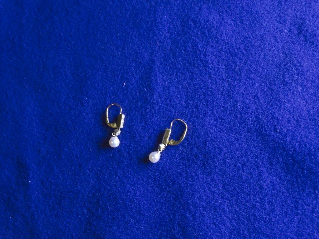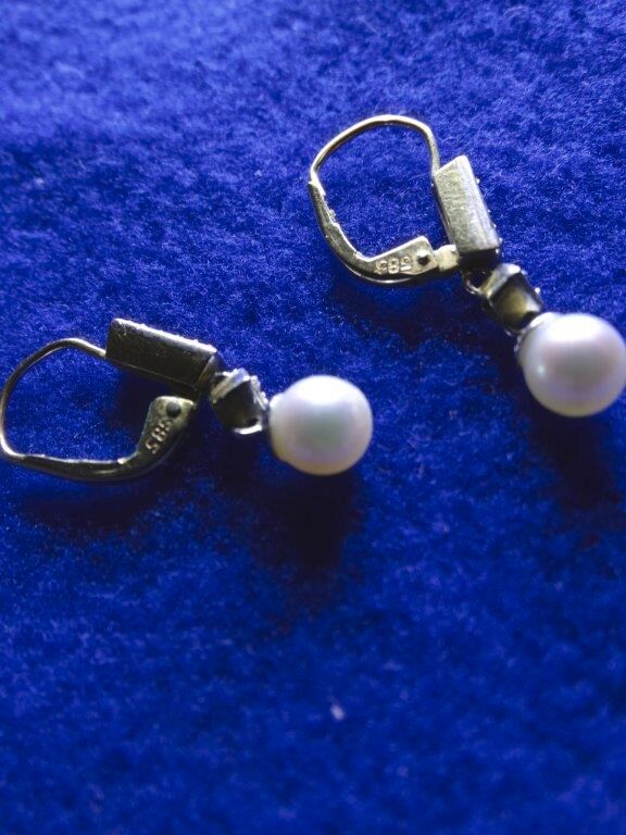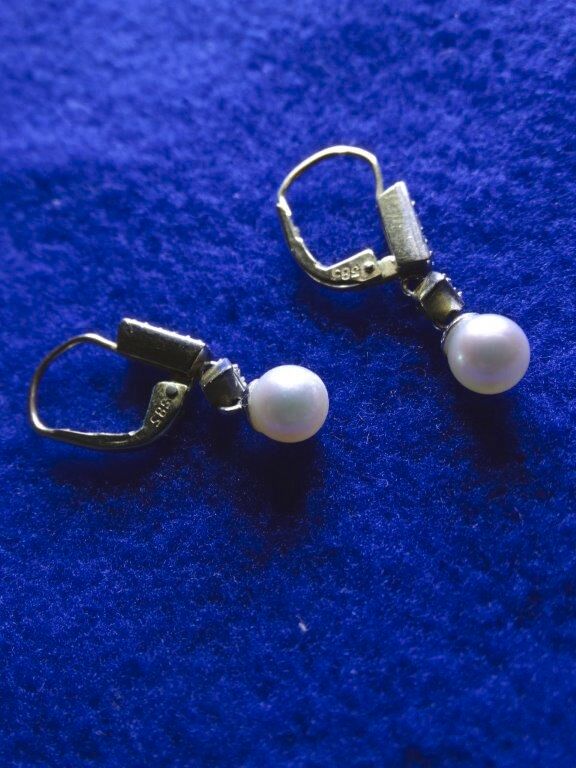 Aus dem Pfandhaus: Goldene Ohranhänger mit echten Perlen und Besatz - 14 Karat Gold - Gewicht 2,3 Gramm