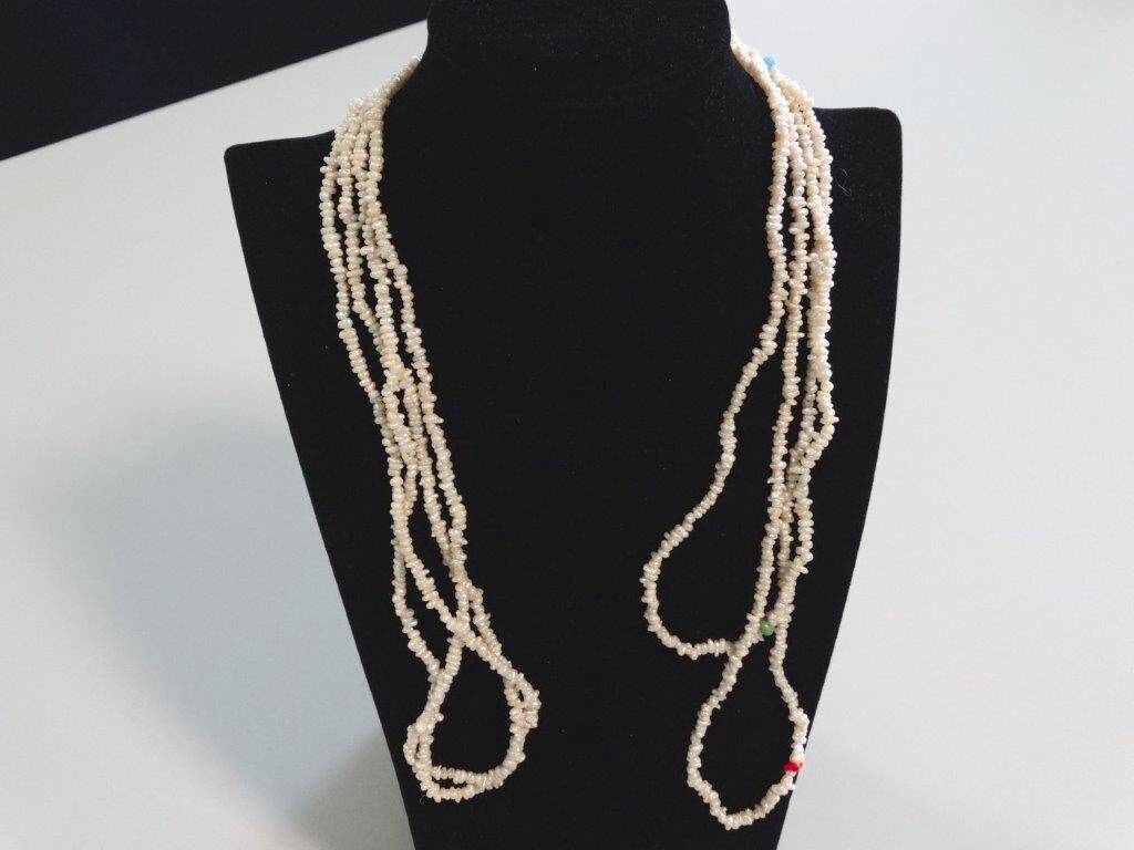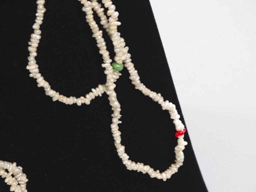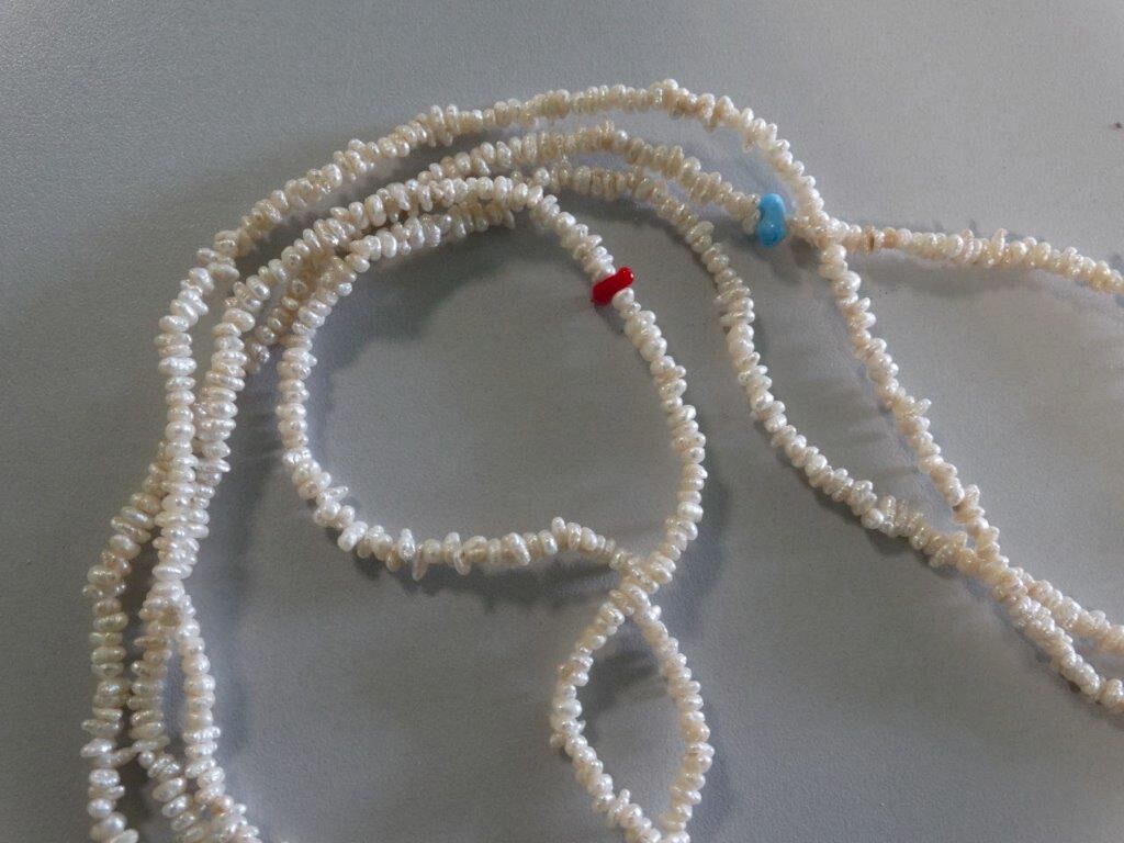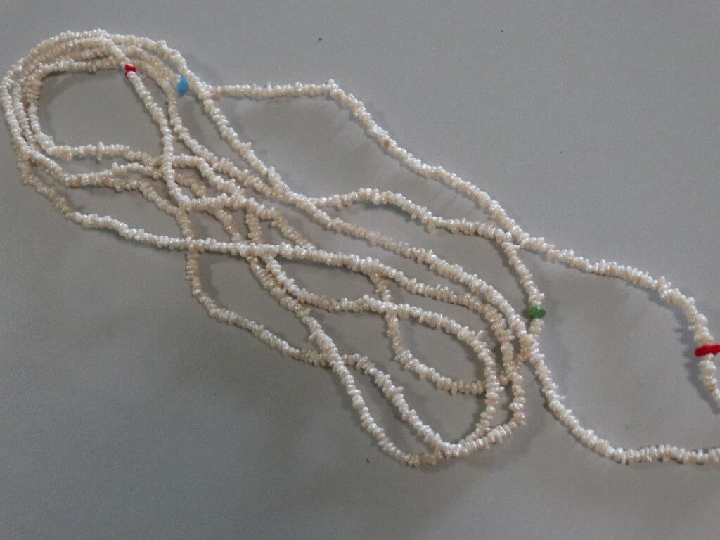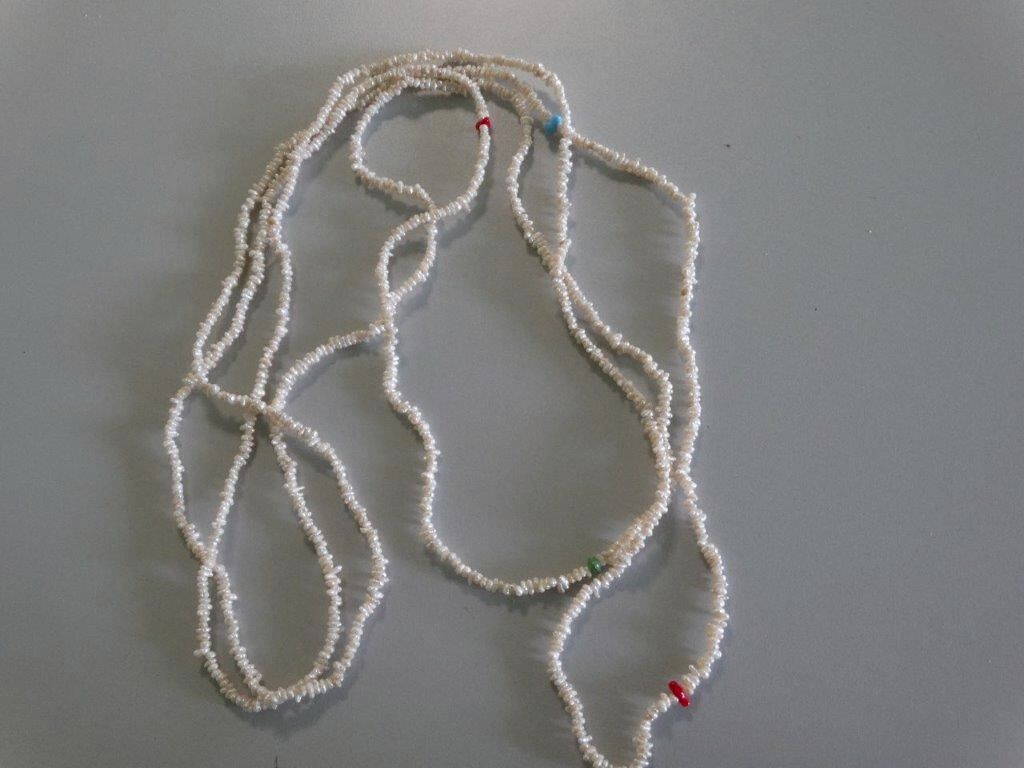 Aus dem Pfandleihhaus: Sehr seltene extra lange Süßwasser Perlenkette mit farblichen Akzenten - ca. 2 Meter lang -- kann 2 fach bzw. 3 fach getragen werden -