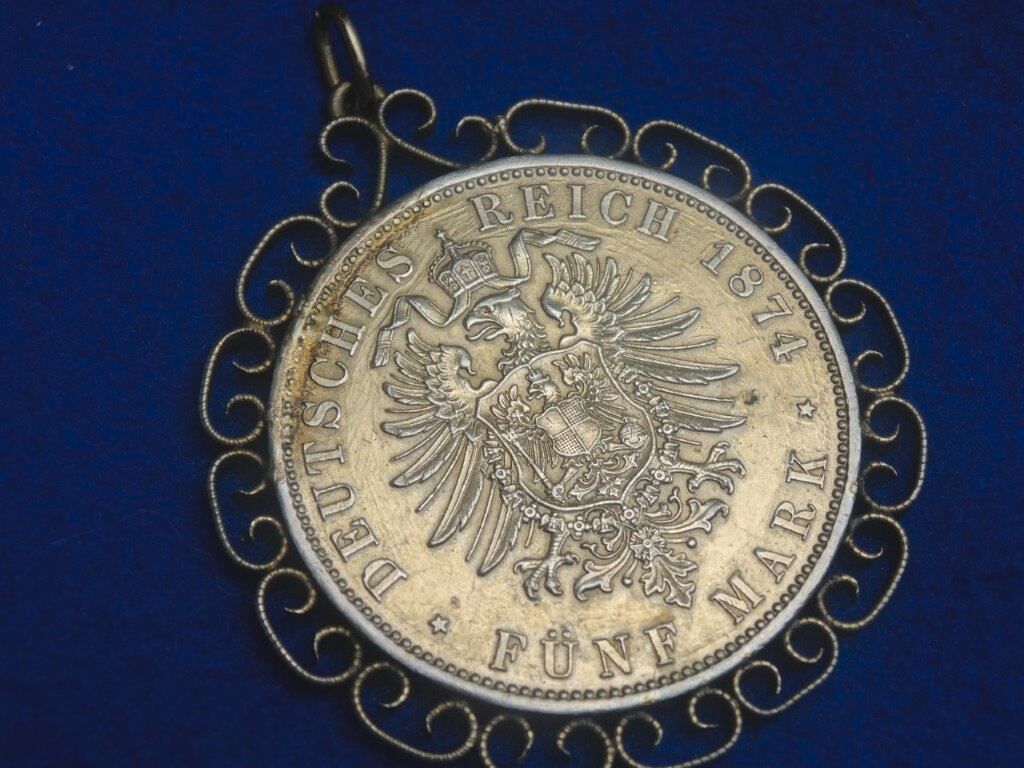 Aus dem Pfandhaus: Anhänger mit Echter 5 Mark Münze - König Ludwig II - König v. Bayern - Deutsches Reich 1874